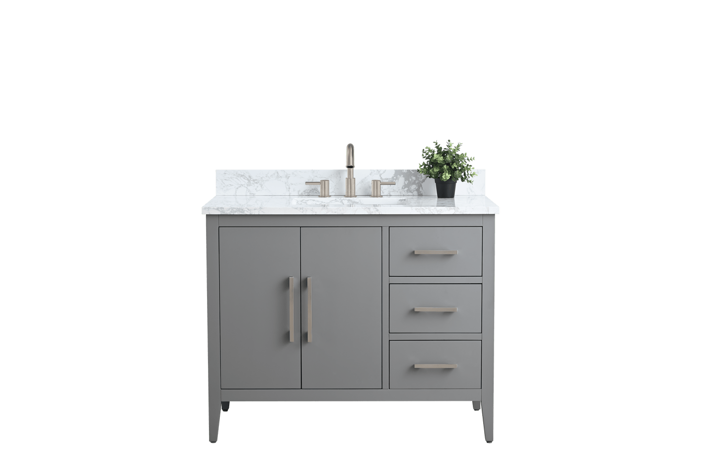 This 42 inch bathroom vanity offers a sleek and modern design to elevate your bathroom. The cashmere gray finish adds a touch of luxury, while the marble countertop provides a durable and elegant surface. The single sink design allows for more counter space, and the high-quality materials ensure long-lasting beauty.
