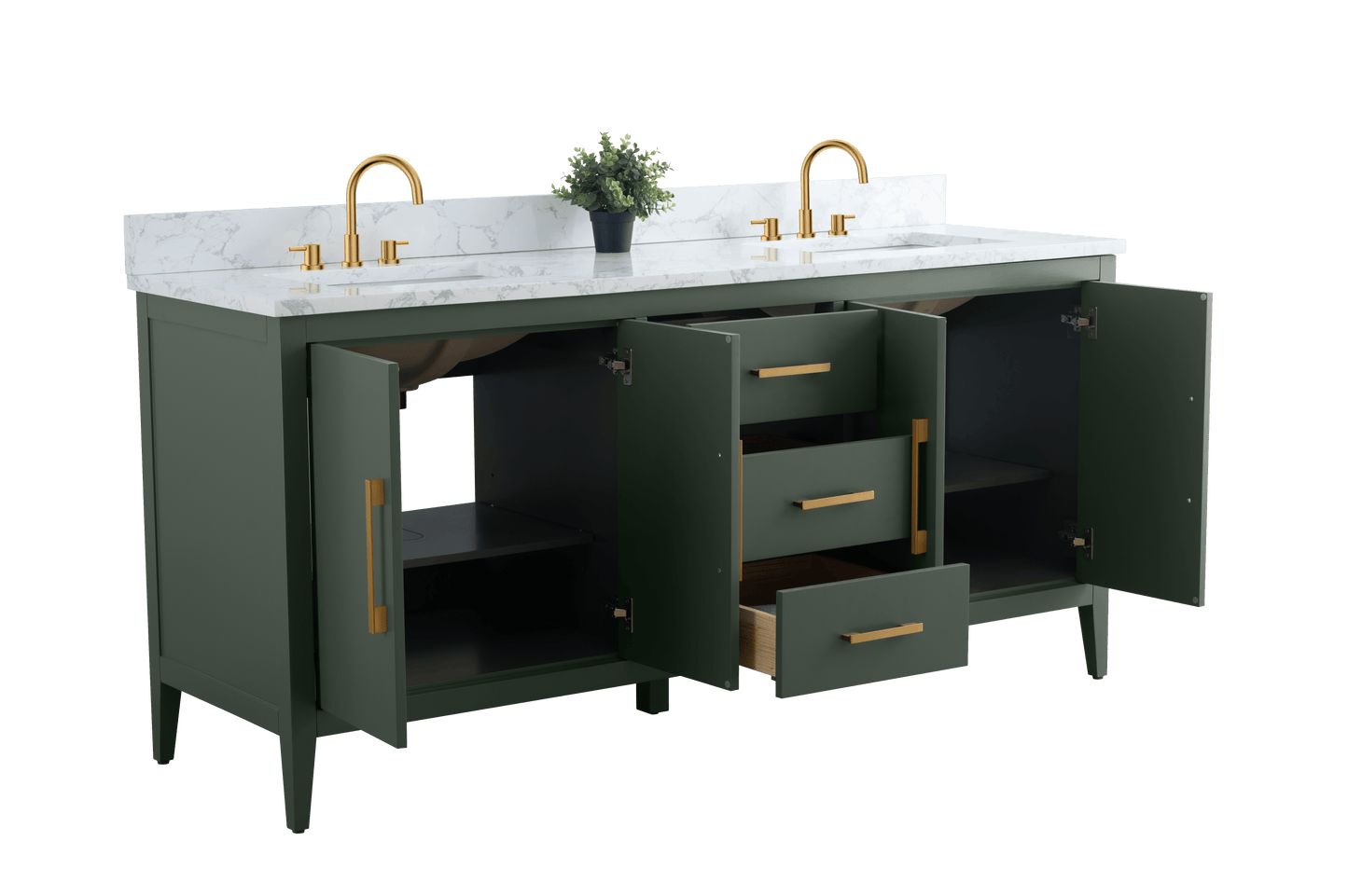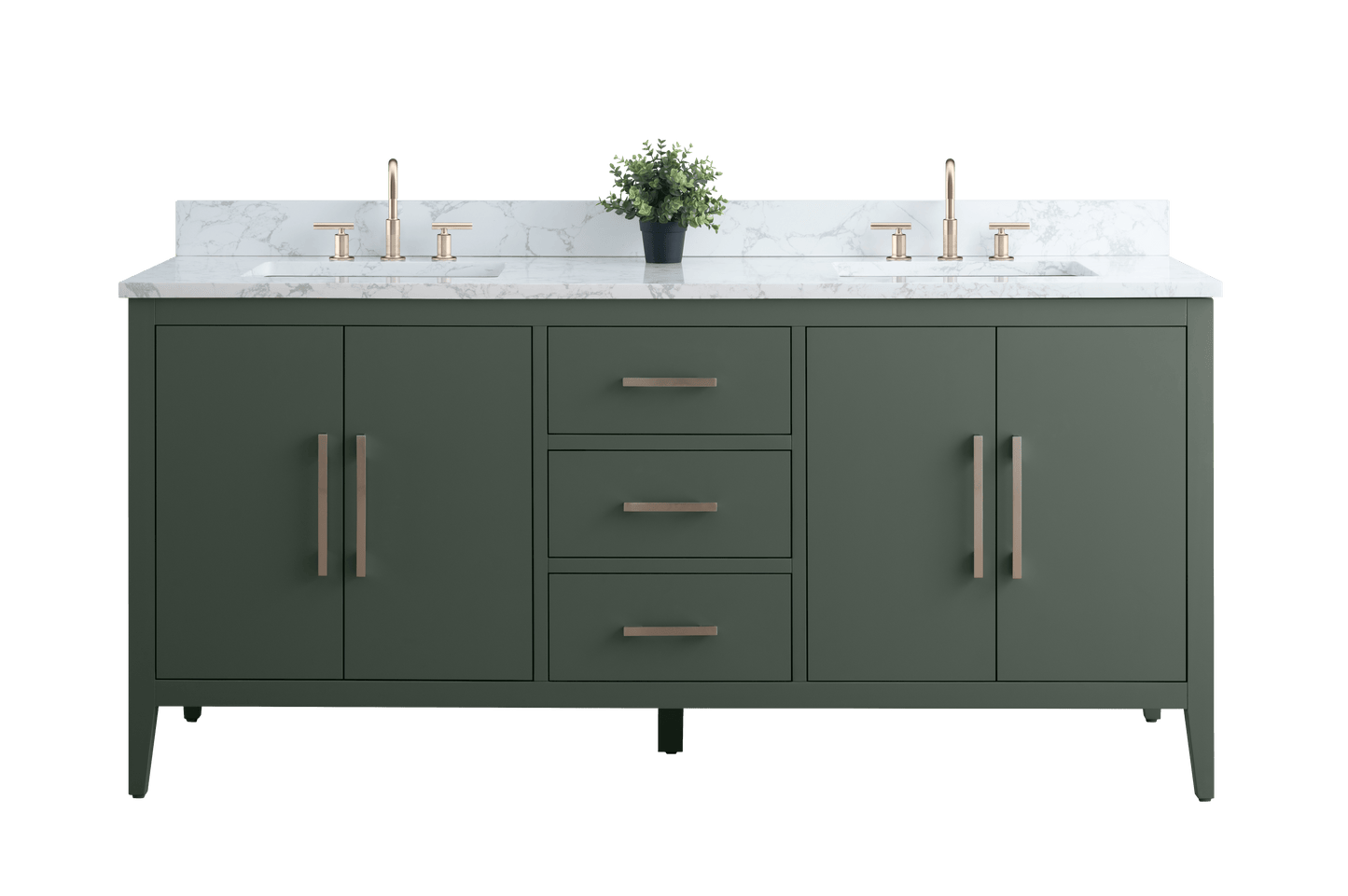 Expertly crafted with a vintage green finish and a luxurious marble countertop, the Vanity Art VA9072-DVG bathroom vanity offers both style and function. With its double sink design, it provides ample space for two people to get ready at once. Elevate your bathroom with this elegant and practical piece.